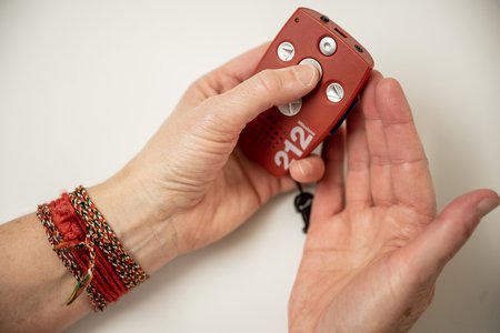 Même pour le grand public, il est parfois difficile de savoir où se trouvent les objets dans la maison. Ce défi est encore plus grand pour les personnes en situation de handicap visuel. Notamment lorsque leurs affaires sont déplacées et que ces personnes ne peuvent plus les trouver. Avec le Findy – un moyen auxiliaire simple fondé sur la technologie Bluetooth –, leur recherche pourrait devenir plus facile à l’avenir. Cet appareil au format carte de crédit, testé en laboratoire, est doté de dix touches claires et faciles à distinguer tactilement. Celles-ci sont disposées en deux colonnes de cinq. Une conception logicielle simple et sans barrières ainsi que des plaquettes électroniques autocollantes ou à coudre permettent d’attribuer un objet déterminé à chacune des touches. Ces attributions sont modifiables à tout moment.